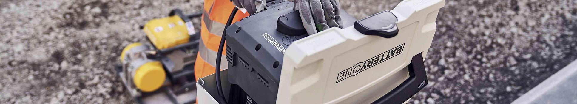 Mit dem Akkusystem BatteryOne können Sie alle unsere akkubetriebenen Baugeräte betreiben. BatteryOne ist ein einfaches und standardisiertes System. Die Batterie passt nicht nur zu allen batterie-elektrischen Geräten von Wacker Neuson, sondern auch zu Baugeräten anderer Hersteller.